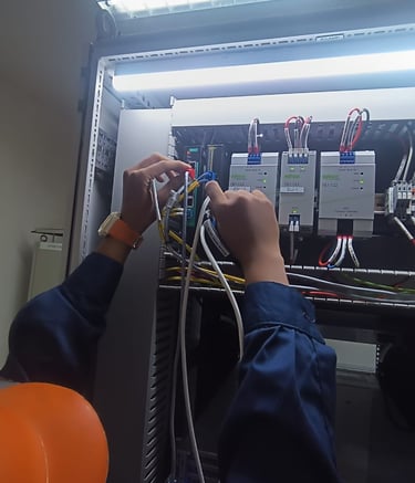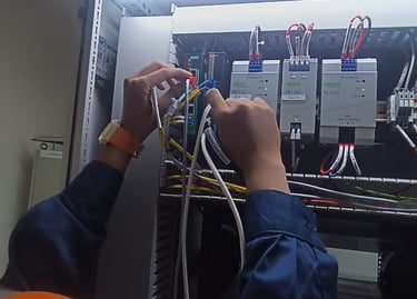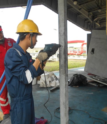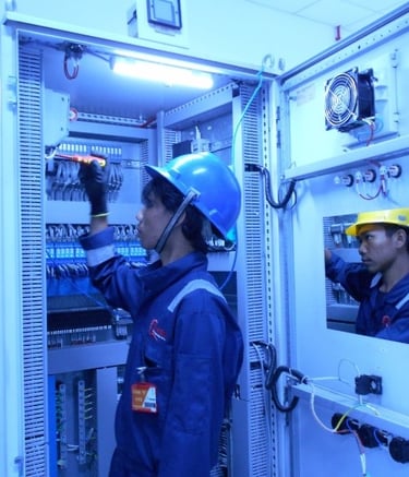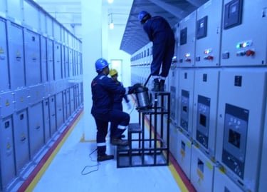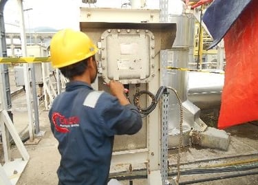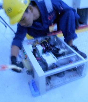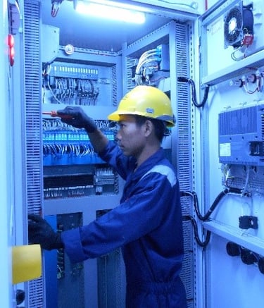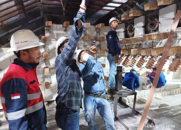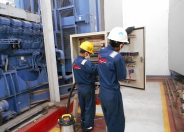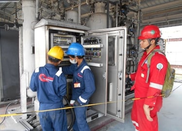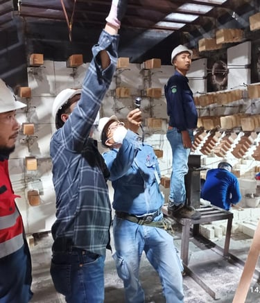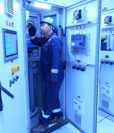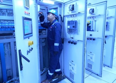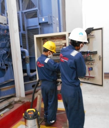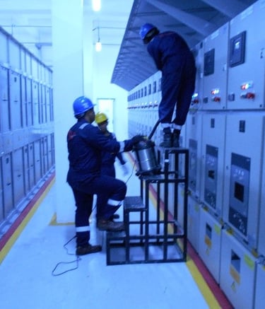 Pengerjaan cleaning and tightening di ruang Substation yang meliputi panel rack, panel MV, panel Soft, panel di wilayah N2 dan panel di Genset Room
