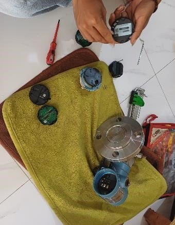 Pembuangan air rembesan dari sensor dan Penambahan sealent untuk mencegah air masuk ke transmitter